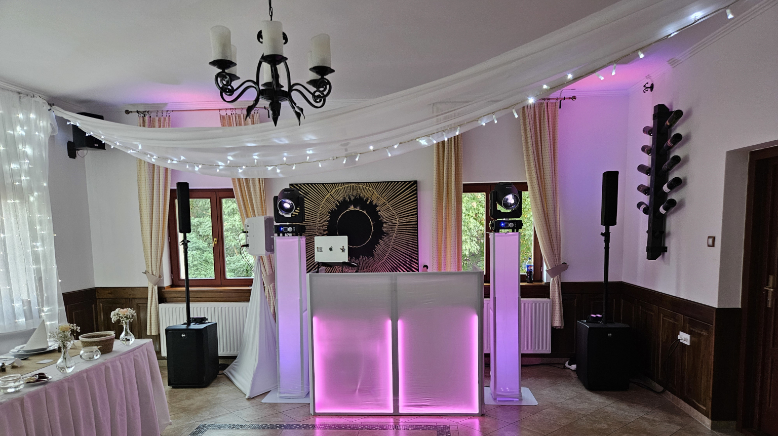 Az alábbi felszerelést az alapár tartalmazza: • Rane Four DJ pult • Macbook Pro • RCF EVOX J8 hangrendszer (2x700W) • 2 db 7R 230W robotlámpa • 2db 150W robotlámpa • 8db akkumulátoros falszínező LED lámpa • Egyéb hangulatfények • Sennheiser XSW-1 vezetéknélküli mikrofon • SoundSwitch fényvezérlő • Füstgép • Mobil DJ pult (nincs szükségünk külön asztalra) • Behringer Flow 8 (digitális keverő, hogy gond nélkül tudjon a ceremóniamester csatlakozni a rendszerünkhöz) • 2 db 7R 230W robotlámpa